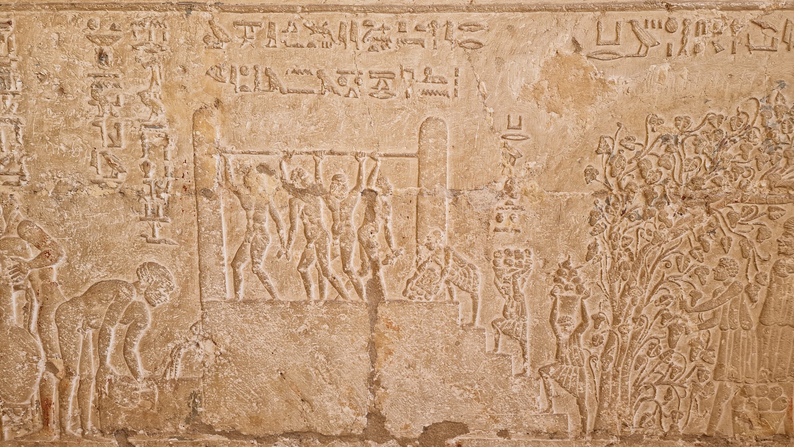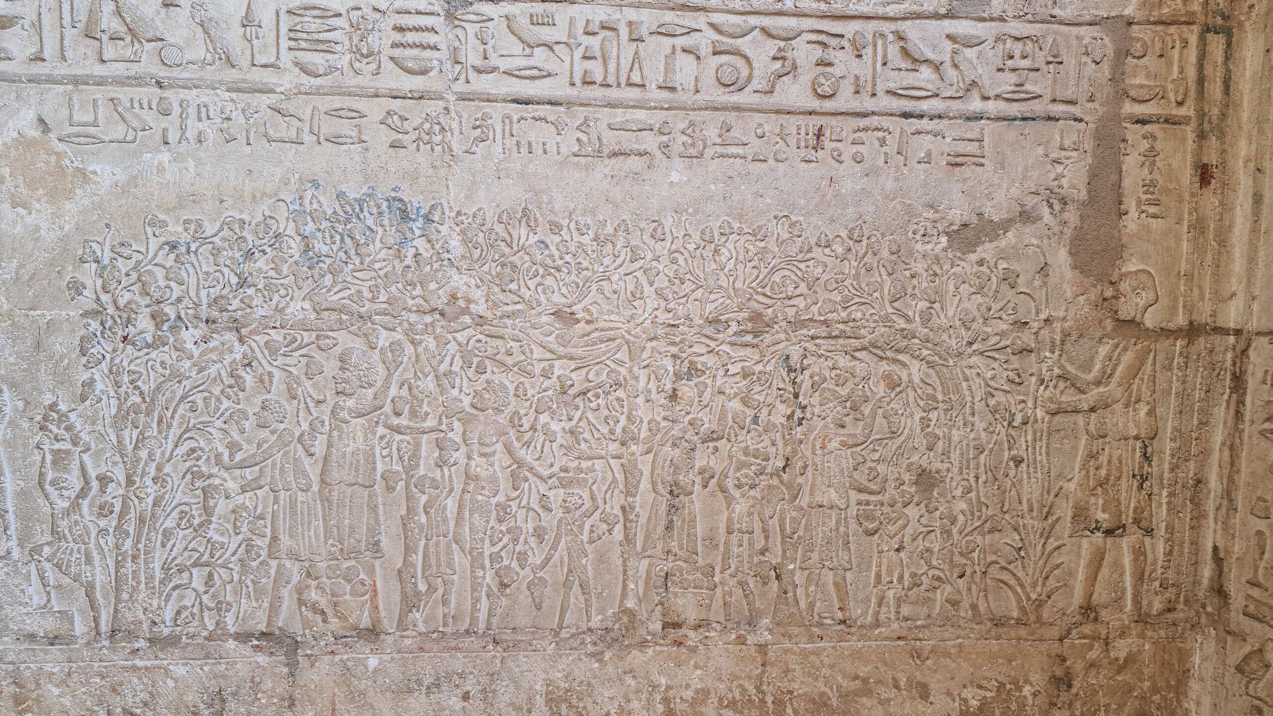 Myndir af víngerð á tíma faróanna í húsi Osiris
